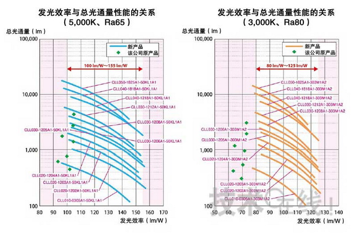 除了CLL-050系列外,西鐵城電子還發(fā)布了亮度最大分別為590lm、1970lm、5780lm以及1萬2915lm的不同封裝的4個系列。包括CLL-050系列在內(nèi)的5個系列產(chǎn)品,覆蓋了95~1萬7675lm的亮度范圍,可以應(yīng)對從10W白熾燈泡到300W汞燈的廣泛需求。
