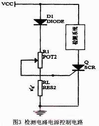 單向可控硅是一種可控整流電子元件,能在外部控制信號(hào)作用下由關(guān)斷變?yōu)閷?dǎo)通,但一旦導(dǎo)通,外部信號(hào)就無(wú)法使其關(guān)斷,只能靠去除負(fù)載或降低其兩端電壓使其關(guān)斷。單向可控硅正向?qū)ㄊ芸刂茦O電流控制,根據(jù)此特性,在光敏電阻的作用下,利用單向可控硅作為檢測(cè)系統(tǒng)的啟動(dòng)開關(guān)。