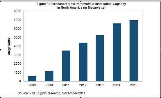 據(jù)IHS iSuppli公司的北美光伏市場報告,美國加州的許多太陽能項目經(jīng)過多年開發(fā)之后終于投產(chǎn),預(yù)計2011年北美的光伏(PV)太陽能系統(tǒng)安裝容量將大增200%。