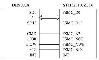 圖3 DM9000A與STM32F103ZET6連接圖