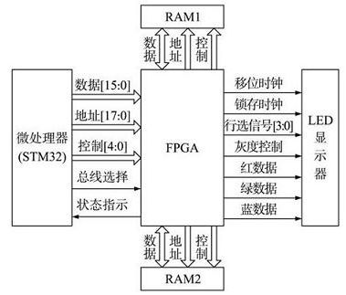 LED顯示屏是利用LED點(diǎn)陣模塊或像素單元組成的一種現(xiàn)代平面顯示屏幕,具有發(fā)光效率高、使用壽命長(zhǎng)、視角范圍大、色彩豐富以及對(duì)室內(nèi)外環(huán)境適應(yīng)能力強(qiáng)等優(yōu)點(diǎn)。20世紀(jì)80年代后期,它在全世界迅速發(fā)展起來(lái),并很快成為大屏幕平板顯示的代表性主流產(chǎn)品;近年來(lái),隨著藍(lán)色LED產(chǎn)品價(jià)格的快速下降,全彩色LED顯示屏的價(jià)格逐步降低,市場(chǎng)需求急劇增長(zhǎng),應(yīng)用日益普遍。目前的LED顯示屏控制系統(tǒng)多采用ARM處理器來(lái)完成整個(gè)系統(tǒng)的功能,這種控制系統(tǒng)在數(shù)據(jù)處理速度上存在很大的局限,影響顯示效果的連續(xù)性?;诖?,在分析了STM32微處理器總線結(jié)構(gòu)特點(diǎn)的基礎(chǔ)上,提出了STM32+FPGA的控制系統(tǒng)方案,該方案充分了利用STM32微處理器的靈活的儲(chǔ)器控制技術(shù)和可編程邏輯器件的靈活性,提高了系統(tǒng)數(shù)據(jù)處理的速度,而且簡(jiǎn)化了電路結(jié)構(gòu),方便調(diào)試。