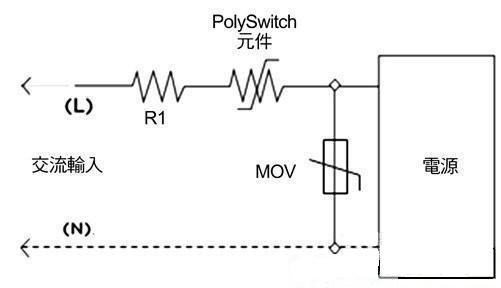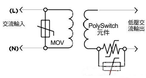 在照明系統(tǒng)中采用第二類功率源可成為降低成本、提高彈性的重要因素之一。固有的有限功率源,如變壓器、電源供應(yīng)器或電池等,可以包含保護(hù)組件,只要不依靠它們限制第二類功率源的輸出即可。非固有型的有限功率源,按照定義,具有一個(gè)分立保護(hù)組件,當(dāng)電流和能量輸出達(dá)到預(yù)定值時(shí)它會(huì)自動(dòng)中斷輸出,各種電路保護(hù)組件都有助于提供LED照明應(yīng)用第二類功率源的安全操作。圖4表示了一種協(xié)同保護(hù)策略的工作原理,它在交流輸入上采用了一個(gè)MOV,在輸出電路分支上采用了一個(gè)PolySwitch組件,可以幫助廠商滿足UL 1310第35.1小節(jié)針對(duì)開關(guān)和控制裝置的過(guò)載試驗(yàn)要求。