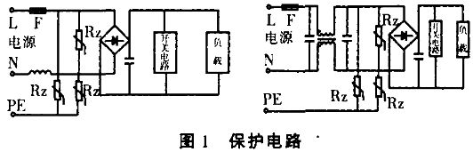 一般應(yīng)在電子鎮(zhèn)流器的電源線路或者其他被保護(hù)的電子元器件前端設(shè)計瞬態(tài)過電壓保護(hù)電路,典型的保護(hù)電路見圖1。
