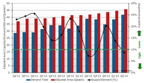 由于面板廠商在過(guò)去六個(gè)季度連續(xù)虧損,且產(chǎn)業(yè)處于不景氣階段且仍將維持一段時(shí)間,面板廠商凍結(jié)了所有液晶電視產(chǎn)線的擴(kuò)張計(jì)劃。與此同時(shí),面板價(jià)格下降,增加了市場(chǎng)需求,尤其是50寸及以上的大尺寸電視面板。因此NPD DisplaySearch預(yù)測(cè)特別是在2013年,面板供需平衡將較為緊張,供需過(guò)剩比將自2010年第二季度以來(lái)首度下降到10%以下。由此,NPD DisplaySearch預(yù)計(jì)平板產(chǎn)業(yè)將開(kāi)始新的循環(huán)周期,面板價(jià)格將逐步上升,利潤(rùn)得以提高,并促使投資增加。