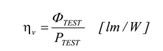 發(fā)光效率ηv的計算如下列公式(6)所述,為待測固態(tài)照明產(chǎn)品的總光通量ΦTEST除以總消耗功率PTEST,此指標是用以評估固態(tài)照明電光效能轉換的重要指標。