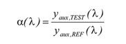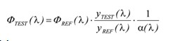 公式(2)中,yTEST (λ)為待測樣品在此系統(tǒng)下的光譜輻射計的讀值、yREF(λ)為參照標準燈在此系統(tǒng)下的光譜輻射計的讀值,α(λ)則為自吸收因子。