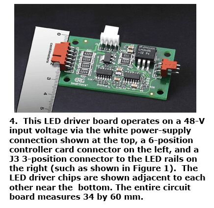 圖中C部分提供LED開/關(guān)及調(diào)光控制。+ENABLE輸入控制背光的開/關(guān),+PW脈寬調(diào)節(jié)斬波驅(qū)動器的導(dǎo)通與截止,以實(shí)現(xiàn)調(diào)光。該設(shè)計(jì)可以實(shí)現(xiàn)得相當(dāng)緊湊(見圖4)。