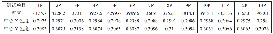 表1 LED 背光源的光學測試數(shù)據(jù)
