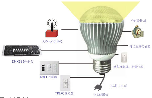 未來照明革新市場潛力巨大,如圖1所示。分時段控制是指在不同時間段有不同的亮度。環(huán)境亮度傳感器可以靈活應對燈具所處環(huán)境的亮度,比如天陰的時候天黑的比平常早,那么路燈就會提前打開。動作傳感檢測器是指夜晚的時候如果燈具周圍無人活動時,會調低亮度,當檢測到有人活動時,就會調高亮度。另外,現(xiàn)代照明需要有多重通信方式,除了無線方式以外,DALI或DMX512等先進的照明專用通信協(xié)議使得燈具的管理更加便捷,電力線載波通信(PLC)也是近年來備受關注的方向。
