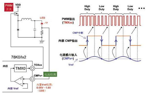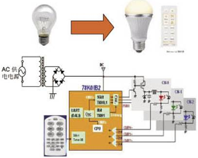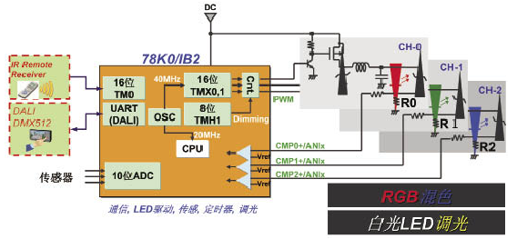 78K0/IB2低成本高亮度LED調光(調色)控制的優(yōu)點: