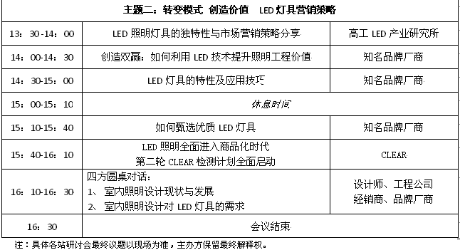 2012是高工LED的渠道年、服務(wù)年,為推廣LED照明節(jié)能產(chǎn)品,分享LED照明設(shè)計(jì)理念,增進(jìn)LED照明廠商、設(shè)計(jì)師、工程商、經(jīng)銷商之間的交流與合作,推動(dòng)LED燈具在家居、酒店、別墅會(huì)所、商場(chǎng)鋪、專賣店、餐飲、辦公、展館、地鐵站等室內(nèi)照明中的應(yīng)用。高工LED將進(jìn)行第三次長(zhǎng)征(2010年全國(guó)LED產(chǎn)業(yè)調(diào)研、2011年全國(guó)燈具城調(diào)研),由高工LED、高工LED商城、《高工LED產(chǎn)品與市場(chǎng)》雜志聯(lián)合全國(guó)各地室內(nèi)裝飾設(shè)計(jì)協(xié)會(huì)、建筑設(shè)計(jì)機(jī)構(gòu)、照明及LED行業(yè)協(xié)會(huì)共同舉辦的“2012 LED照亮中國(guó)之旅”渠道開(kāi)拓活動(dòng)-室內(nèi)LED照明設(shè)計(jì)全國(guó)巡回研討會(huì)暨全國(guó)室內(nèi)LED照明設(shè)計(jì)大賽,將于4‐8月在北京、西安、南京、杭州、上海、武漢、成都、廈門、深圳、廣州、中山11個(gè)重點(diǎn)城市舉辦。整個(gè)巡回研討會(huì)將有全國(guó)近1500名來(lái)自設(shè)計(jì)機(jī)構(gòu)、工程公司、經(jīng)銷商等單位專業(yè)人士參加,活動(dòng)將覆蓋超過(guò)20萬(wàn)設(shè)計(jì)、工程、經(jīng)銷等各渠道群體。