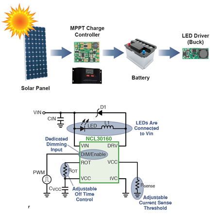 NCL30051與NCP30160IC在一起搭配工作,可以最少的外部元件簡(jiǎn)化電源電路設(shè)計(jì)。這種架構(gòu)使芯片組能夠集成在更緊湊及更高性?xún)r(jià)比的LED照明電源中,用于戶(hù)外照明(如LED路牌、街燈、停車(chē)場(chǎng)燈)等通用照明應(yīng)用。