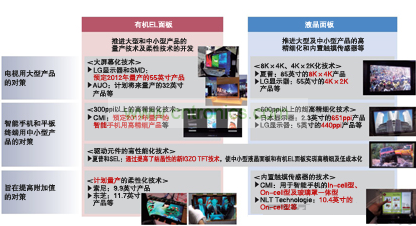 2012年,SMD和LG顯示器計劃量產(chǎn)電視用55英寸面板,友達光電(AUO)和奇美電子(CMI)計劃量產(chǎn)智能手機用中小型面板。日本廠商中,日本顯示器正在以2013年量產(chǎn)為目標。索尼和松下也將共同開發(fā)大尺寸面板。隨著各競爭公司紛紛表明涉足,“如果美國蘋果等大客戶有需求,夏普應該也不會拒絕”(顯示器相關分析師)。