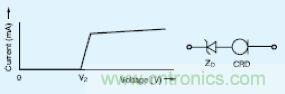 它在某一個電壓范圍內(nèi)有一段恒流區(qū)間,在這個區(qū)間,流經(jīng)的電流幾乎不變,VL為到達(dá)IL的電壓值,IL大約為0.8Ip,Vb為擊穿電壓值。但是實(shí)際的恒流二極管并不是那么理想。圖3是美國Supertex的CL1恒流二極管的特性。它的電流仍然會隨電壓而有所增加。