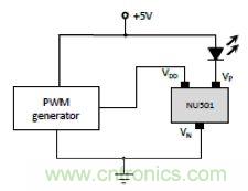 圖19 用PWM信號來對恒流二極管供電的LED調(diào)光