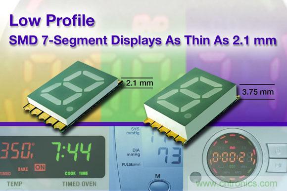 今天推出的器件采用發(fā)光均勻、無污點的數(shù)碼管和灰色封裝表面。VDMx10A1系列LED數(shù)碼管采用共陽極配置,封裝高度只有2.1mm。VDMx10x0系列器件提供共陽極和共陰極配置,封裝高度為3.75mm。