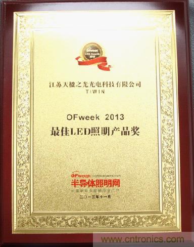 天楹之光成功奪得“最佳LED照明產(chǎn)品獎(jiǎng)”