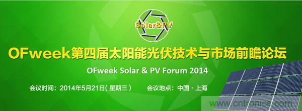 2014年5月21日,由OFweek主辦、OFweek太陽能光伏網(wǎng)承辦的“OFweek Solar & PV Forum 2014太陽能光伏技術(shù)與市場前瞻論壇”將在上海隆重舉行。本次峰會擬邀請杜邦、MANZ、特變、山億新能源等知名企業(yè)專家、高層,以及政策決策機構(gòu)、行業(yè)組織機構(gòu)嘉賓主講太陽能電池轉(zhuǎn)換效率的技術(shù)、CIGS薄膜電池技術(shù)與投資、光伏電站項目投資收益率(IRR)等重大議題。同時OFweek行業(yè)研究中心太陽能光伏領(lǐng)域分析師團隊針對2014年中國光伏電站領(lǐng)域的建設(shè)熱點和投資機會共同組織本次論壇,給業(yè)界及希望在光伏領(lǐng)域?qū)ふ倚聶C會的投資方以明確的分析和投資指南。
