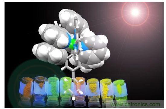 銥金屬中心被包覆在一種有機(jī)外殼,為L(zhǎng)EC提供保護(hù)作用。這種外殼的精確化學(xué)結(jié)構(gòu)讓研究人員們得以調(diào)整發(fā)光的色彩。(來(lái)源:University of Basel)