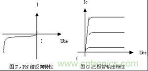 其實,從二極管PN的反向截止特性曲線上很容易看出,只要將這個特性曲線轉(zhuǎn)過180度,如圖F所示,它的情形與三極管的輸出特性非常相似,三極管輸出特性如圖G所示。這說明了二極管與三極管在原理上存在著很必然的聯(lián)系。所以,在講解方法上選擇這樣的切入點,從PN結(jié)的偏狀態(tài)入手講三極管,就顯得非常合適。而且,這樣的講解會使問題變得淺顯易懂生動形象,前后內(nèi)容之間自然和諧順理成章。