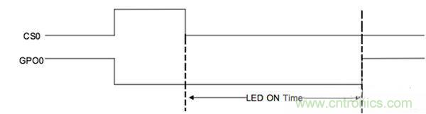通常對(duì)于電容式按鍵來(lái)說(shuō),LED直接位于按鍵之下,從中心位置發(fā)光。用戶手指放在按鍵上,LED就會(huì)被隱藏起來(lái)。在此情況下,如果用戶手剛從按鍵上拿開(kāi)LED燈就馬上關(guān)閉,那么用戶可能難以確定按鍵操作到底成功沒(méi)有。為此,我們可以讓LED在觸摸結(jié)束后保持“開(kāi)啟”一小段時(shí)間,從而為用戶提供更好的視覺(jué)反饋。這種特性就叫LED開(kāi)啟時(shí)間,如圖2所示。