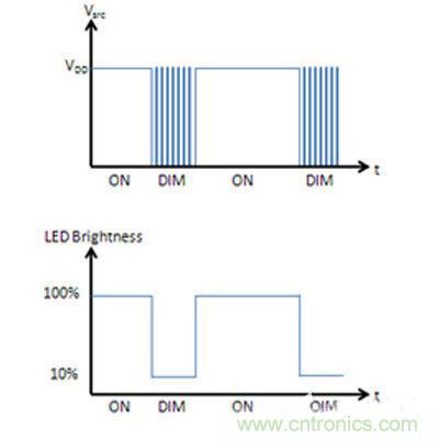 PWM是LED亮度控制應(yīng)用中的關(guān)鍵技術(shù)。通過(guò)改變PWM輸出的占空比,我們能如圖4一樣調(diào)節(jié)LED亮度,從而讓用戶界面的亮度對(duì)應(yīng)于按鍵狀態(tài)和環(huán)境光條件。事實(shí)上,改變亮度正是呼吸、淡入淡出等高級(jí)效果的基礎(chǔ)所在。我們將在第二部分介紹PWM的設(shè)計(jì)參數(shù)和多種不同實(shí)現(xiàn)方案。