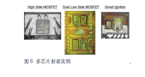 圖6所示為目前車載系統(tǒng)中采用多芯片封裝的幾個實例。這些智能化器件可以提供更高的系統(tǒng)性能監(jiān)控能力,通過集成保護功能提高功率系統(tǒng)的可靠性。如過流、過壓和過熱保護等功能都是這類產品的標配。當器件感測到有可能發(fā)生上述異常狀況時,能夠把功率MOSFET置于自我保護整個系統(tǒng)的環(huán)境中。此外,這些器件還集成有附加診斷功能,用以監(jiān)控負載開路或短路,有助于指導汽車機械裝置隔離和糾正車輛中出現的問題。