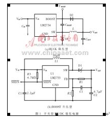 圖1為二款不同功能的開關(guān)型DC/DC轉(zhuǎn)換電路。它們具有轉(zhuǎn)換效率高、重量輕,既可以升壓,又可以降壓,輸出功率大等特點(diǎn)。由于其轉(zhuǎn)換效率高,電路中元器件的發(fā)熱量相對(duì)較小。由于電路處于較高頻率的開關(guān)工作狀態(tài),只需采用小容量、小體積的濾波電容即可見(jiàn)效。對(duì)輸入源電壓波動(dòng)的容裕范圍比較寬。