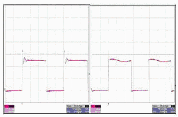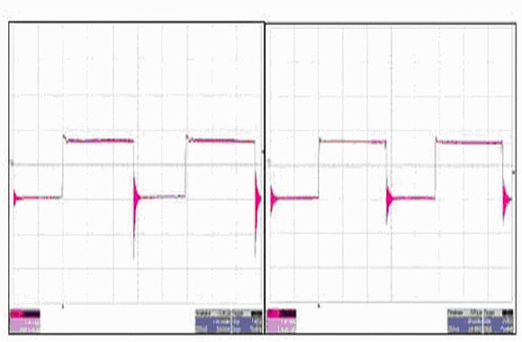 圖 6 傳統(tǒng)同步反向電源的負振鈴要比有源鉗位反向電源的負振鈴嚴(yán)重很多