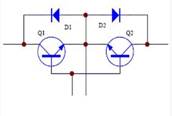 旁路開關(guān)常使用繼電器和可控硅。繼電器在中小功率的UPS 中廣泛應(yīng)用。優(yōu)點是控制簡單,成本低,缺點是繼電器有轉(zhuǎn)換時間,還有就是機電器件的壽命問題。可控硅常見于中大功率UPS 中。優(yōu)點是控制電流大,沒有切換時間。但缺點就是控制復(fù)雜,且由于可控硅的觸發(fā)工作特性,在觸發(fā)導(dǎo)通后要在反向偏置后才能關(guān)斷,這樣就會產(chǎn)生一個最大10ms的環(huán)流電流,如圖2。如果采用IGBT,如圖3,則可以避免這個問題,使用IGBT 有控制簡單的優(yōu)點,但成本較高。其工作原理為:當(dāng)輸入為正半周時,電流流經(jīng)Q1、D2,負(fù)半周時電流流經(jīng)D1、Q2。