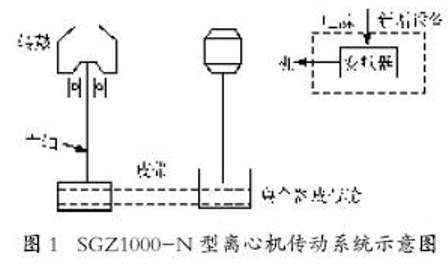 我廠海綿銅處理工序中采用SGZ1000-N 型三足式全自動下部卸料離心機,進行海綿銅固液分離,該設(shè)備由主機、輔機、轉(zhuǎn)鼓(以1 200 r/min轉(zhuǎn)動)等組成。傳動系統(tǒng)情況如圖1所示。
