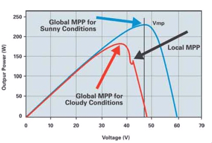 作為一種替代解決方案,人們提出了一種增量自感算法,通過(guò)定義一個(gè)峰值,然后,求解功率曲線的微分,從而得出MPP點(diǎn)。雖然這種方法沒(méi)有因?qū)挿秶袷幰鸬牡托蕟?wèn)題,但是,它存在把本地峰值誤設(shè)為MPP點(diǎn)的可能。