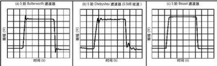 圖3 Butterworth (a)、Chebyshev (b)和Bessel (c) 低通5階濾波器的時(shí)間響應(yīng)|
