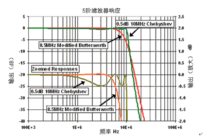 因此,我們必須在電平平坦度、截止頻率、衰減和群延遲差異間取得平衡,以獲得合適的視頻濾波器。大家一致認(rèn)為,巴特沃思濾波器對(duì)消費(fèi)類電子視頻來(lái)說(shuō)是一種較好的平衡型濾波器,電平響應(yīng)實(shí)現(xiàn)了最大的平坦度,衰減率適當(dāng),群延遲也不錯(cuò)。它雖說(shuō)不上是最理想的,但通常對(duì)系統(tǒng)而言已經(jīng)足夠好了。