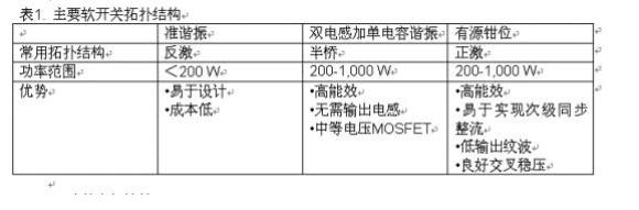 要提高主轉(zhuǎn)換器能效可以采用以下幾種方法。一是通過降低導通阻抗(開關損耗較高)和/或減小初級峰值電流和均方根電流來降低初級導通損耗;二是考慮采用軟開關技術(shù)降低開關損耗;三是通過減少整流器壓降(使用低正向壓降二極管或FET整流器)來降低次級損耗;四是采用更好的磁芯材料來降低磁芯損耗。表1列出了主要軟開關的拓撲結(jié)構(gòu),可供設計時參考。