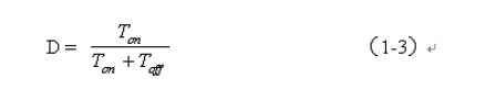 式中Ton為控制開關(guān)K接通的時(shí)間,T為控制開關(guān)K的工作周期。改變控制開關(guān)K接通時(shí)間Ton與關(guān)斷時(shí)間Toff的比例,就可以改變輸出電壓uo的平均值Ua 。一般人們都把 稱為占空比(Duty),用D來(lái)表示,即:
