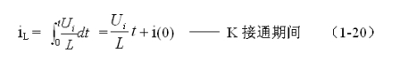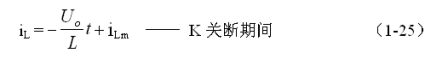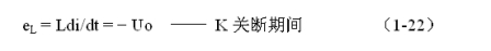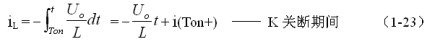式中–Uo前的負號,表示K關(guān)斷期間電感產(chǎn)生電動勢的方向與K接通期間電感產(chǎn)生電動勢的方向正好相反。對(1-22)式進行積分得: