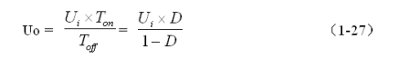 由(1-27)式可以看出,反轉(zhuǎn)式串聯(lián)開關(guān)電源輸出電壓與輸入電壓與開關(guān)接通的時間成正比,與開關(guān)關(guān)斷的時間成反比。