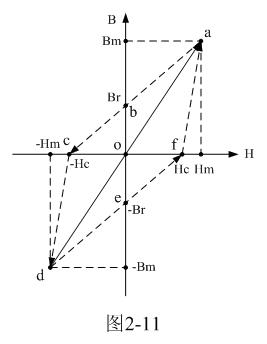 在圖2-11中,直線d-o-a是變壓器鐵芯的理想磁化曲線;當(dāng)輸入電壓為交流的時(shí)候,磁通密度是從負(fù)的最大值- Bm到正的最大值Bm之間來(lái)回變化。