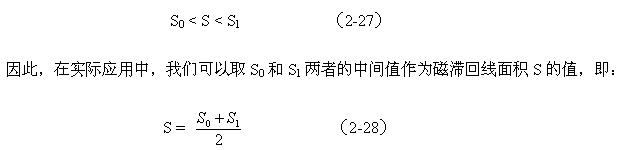 (2-30)式主要用于磁滯回線面積S的值小于第一次估算結(jié)果的情況;(2-31)式主要用于磁滯回線面積S的值大于第一次估算結(jié)果的情況。顯然用(2-30)和(2-31)估算出來(lái)的結(jié)果要比用(2-28)估算出來(lái)的結(jié)果更精確。