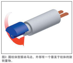 柱型馬達(dá)是采用傳統(tǒng)軸向設(shè)計(jì)的簡單有刷電機(jī),如圖2所示。用于多種應(yīng)用中,但由于體積較大,不適合在手機(jī)中應(yīng)用。柱型馬達(dá)在手機(jī)中需要較大的空間,直徑是所有振動(dòng)馬達(dá)中最大的。