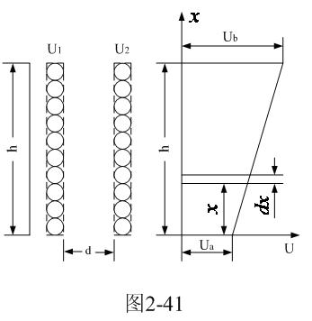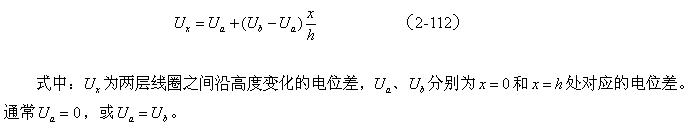 設(shè)圓柱形兩層線圈之間的距離為d,高度為h,平均周長(zhǎng)為g 。假定兩層線圈之間沿高度的電位差為線性變化,即: