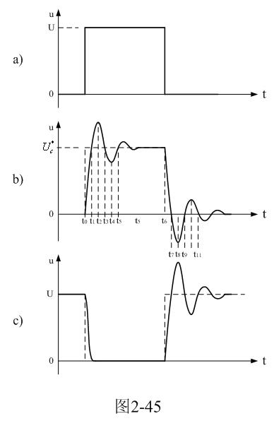 當開關(guān)管Q1導通過后,開關(guān)管開始關(guān)斷,相當于輸入脈沖電壓的上升率為負(脈沖進入反沖階段),此時,輸入脈沖電壓的上升率小于串聯(lián)振蕩回路自由振蕩電壓的上升率,因此,振蕩回路又開始再次釋放能量,振蕩回路再次產(chǎn)生阻尼振蕩,如圖2-45所示。