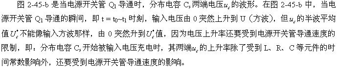 這里順便指出,圖2-45-b的波形是很難測量到的,因為它基本上都在變壓器內(nèi)部的分布電感Ls與分布電容Cs之間產(chǎn)生,但它會通過輻射對周邊電路造成干擾。