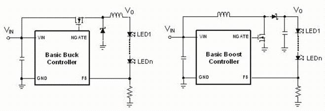 由于Boost和Buck-boost調(diào)節(jié)器的高度復(fù)雜性及其外圍電路、低效(特別是Buck-boost)和控制拓?fù)涞倪x擇不足,致使它們都不是轉(zhuǎn)換LED驅(qū)動(dòng)的首選。但是它們都是LED越來(lái)越多的照明應(yīng)用必不可少的。某些系統(tǒng)結(jié)構(gòu)可以用buck或者甚至是線(xiàn)性以調(diào)節(jié)器為基礎(chǔ)的LED驅(qū)動(dòng)來(lái)替代。比如類(lèi)似于街燈的大型光源需要一百甚至更多的1W+LED。一般來(lái)說(shuō),針對(duì)通用照明的LED從低功耗走向高功耗,并且在其中間舞臺(tái),比如汽車(chē)前燈和小型光部件,boost和buck-boost調(diào)節(jié)器代表了常電流驅(qū)動(dòng)的最佳選擇。