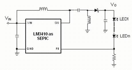 SEPIC轉(zhuǎn)換器擁有連續(xù)輸入電流的優(yōu)點(diǎn),這個(gè)連續(xù)輸入電流是由輸入電感和正輸出電壓產(chǎn)生的。像boost和單電感buck-boost,它們需要一個(gè)輸出電容來(lái)維持一個(gè)平滑LED電流。另外一個(gè)SEPIC轉(zhuǎn)換器的優(yōu)點(diǎn)是幾乎任何一個(gè)低端調(diào)節(jié)器或者控制器都可以被設(shè)置成為一個(gè)毋需反偏或測(cè)平移動(dòng)電路的SEPIC。