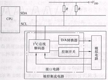 掛接在I2C總線上的受控集成電路大多屬于模擬電路,而受控集成電路中的I2C總線接口電路則屬于數(shù)字電路。為避免數(shù)字電路與模擬電路之間的互相干擾,常為數(shù)字電路與模擬電路設(shè)置單獨(dú)的供電端子,即設(shè)置I2C總線接口電路專用電源端子(或數(shù)字電路電源引腳)。如果I2C總線接口電源端子沒有電壓,則這塊集成電路不能正常工作。