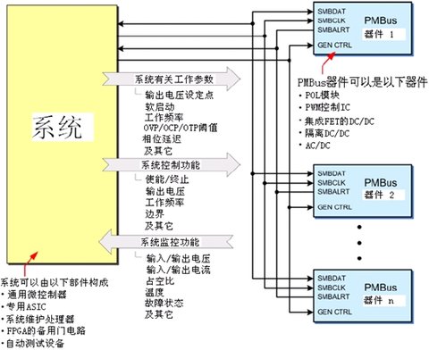 PMBus是屬于系統(tǒng)管理實(shí)施論壇(SystemImplementersForum:SM-IF)的一個開放性標(biāo)準(zhǔn),用于定義功率集成電路,所有類型的功率變換電路(例如AC/DC,隔離的DC/DC,非隔離的點(diǎn)負(fù)載(POL)變換器和微處理器供電的變換器等)之間相互通信的一種開放性通信協(xié)議。