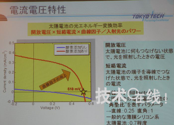 此次,小長井研究小組的產(chǎn)官學合作研究員黑川康良宣布,通過向位于硅量子點周圍的非晶SiC層添加氧,以防止SiC的結(jié)晶化等,元件的Voc和FF值分別達到了518mV和0.51。據(jù)稱,此前的硅量子點太陽能電池,澳大利亞新南威爾士大學(New South Wales University)教授M. Green小組發(fā)布的Voc=492mV為最高值。“我們的目標是達到700~1000mV”(黑川)。