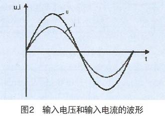 此時能量從電網(wǎng)經(jīng)由整流回路和逆變回路流向電機(jī),變頻器工作在第一、第三象限。輸入電壓和輸入電流的波形如圖2所示。